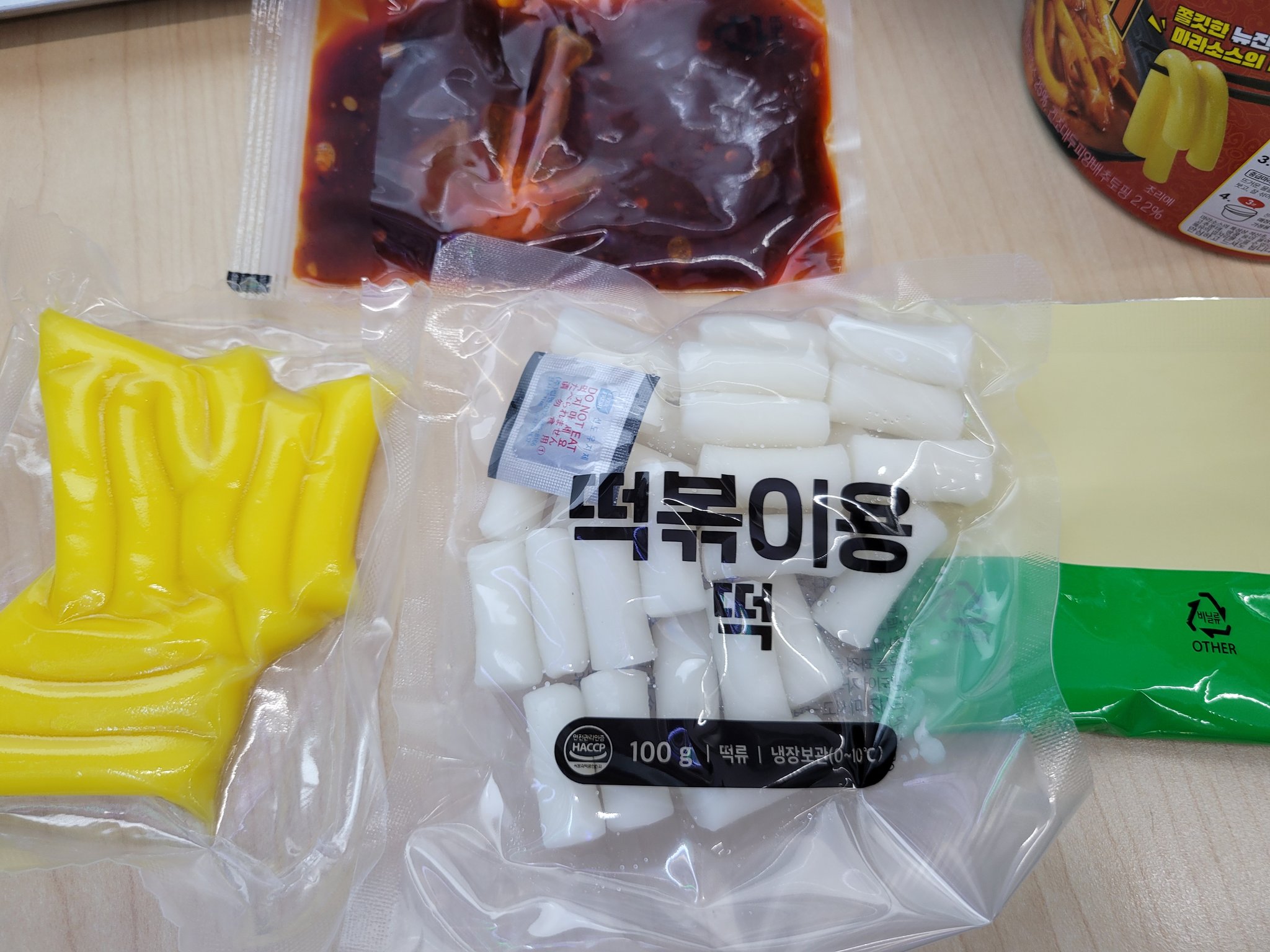 뉴진면, 떡, 소스, 후레이크 총 4가지로 구성되어 있다.